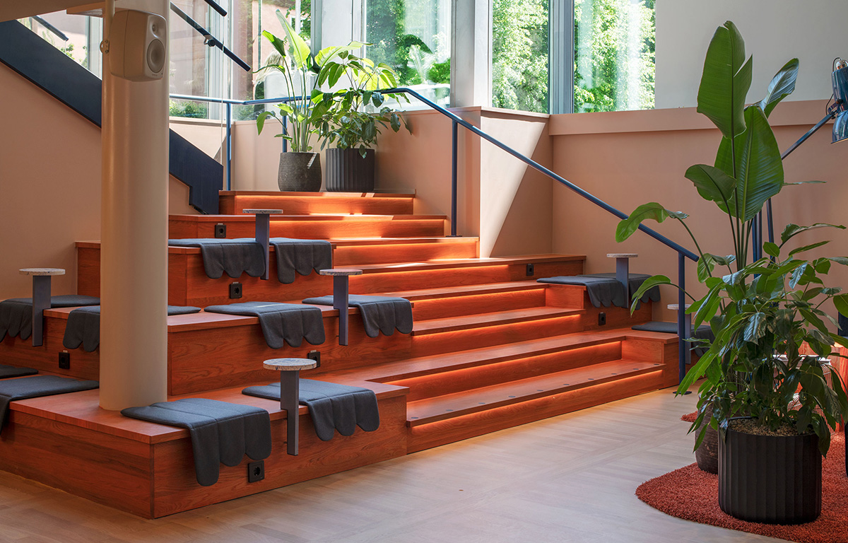 As you sweep through the grand entrance and 20-meter high lounge, you arrive at Bonny, our largest room at Helio Slussen. Here, we’ve created a space that functions like a Swiss Army knife, where we can adapt the room to your needs. It’s suitable for a breakfast seminar, a full-day workshop, or training. Both tables and chairs can be moved around in the room, and we have ample space with whiteboards and the latest AV technology from BOSE.