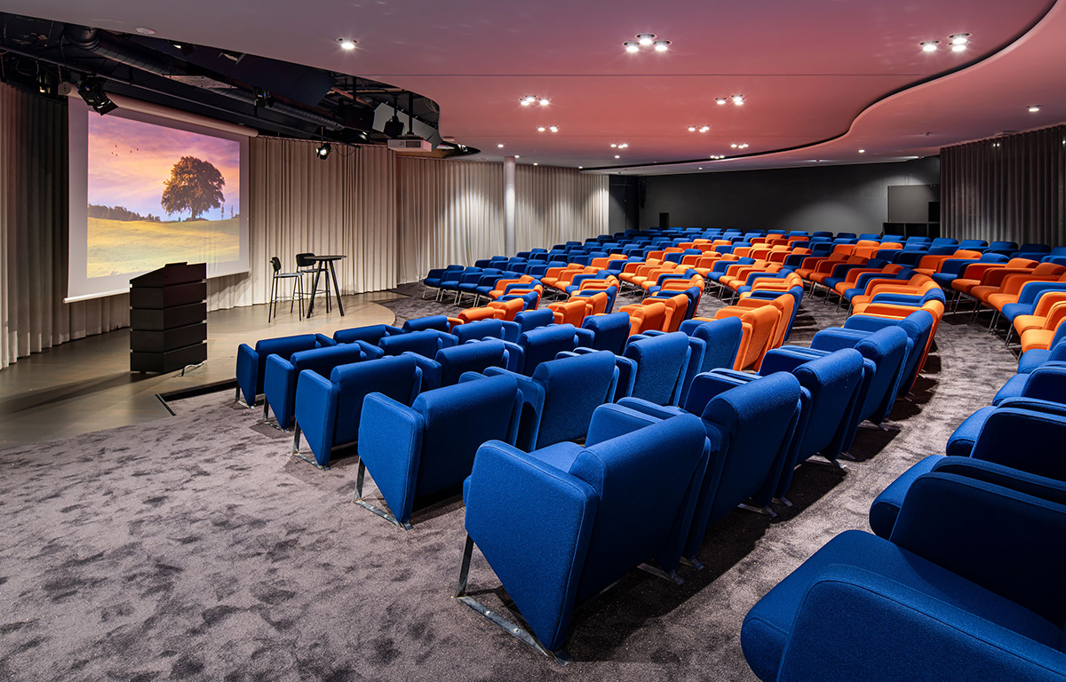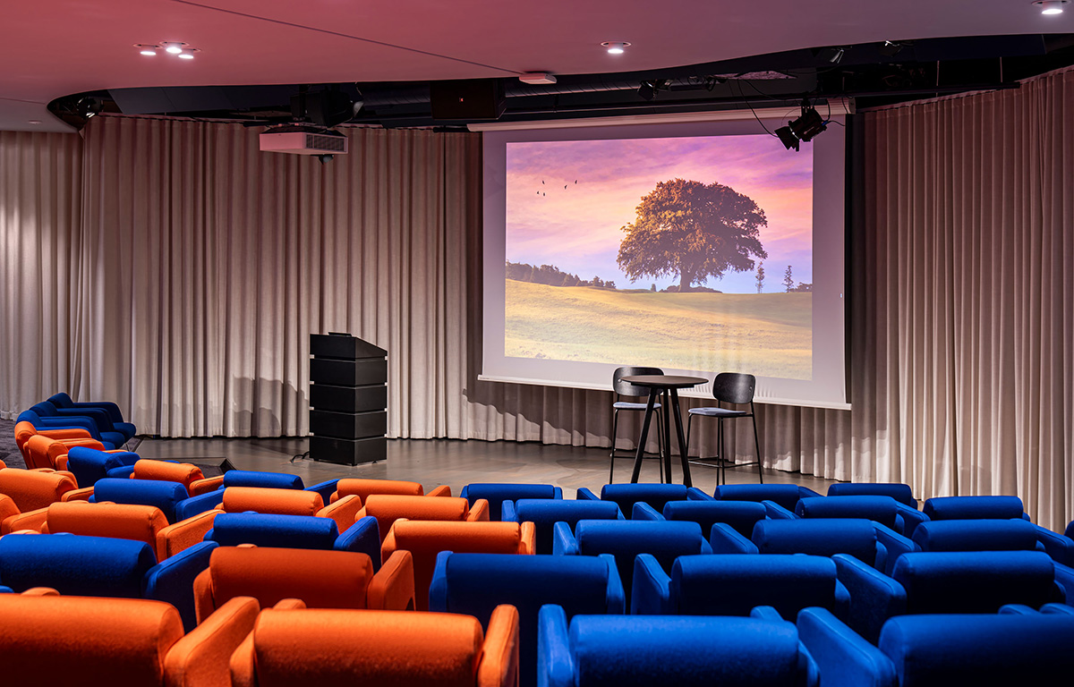 Vår stora hörsal, döpt efter den klimatsmarta bioenergin som driver Helio Frösundavik, är utformad som en biograf och erbjuder en oslagbar upplevelse för större möten. Med 148 platser, en gigantisk skärm och den senaste tekniken, har ni allt ni behöver för att göra era evenemang något extra. Talapulpeten har nätverksanslutning, och scenljuset kan justeras för att passa olika behov.