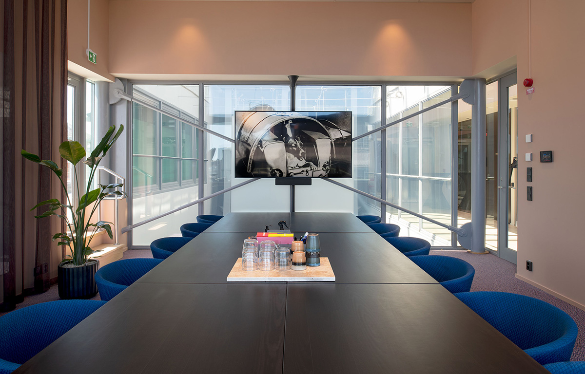 Med utsikt mot Stockholms inlopp och Djurgården kommer Laika definitivt ta ditt möte till nya höjder. Förutom att Laika är namnet på den första hunden i Rymden är det också ett av våra favoritrum på Helio Slussen. Det är ett flexibelt mötesrum som går att möblera för olika syften, med egen utgång till takterrassen för att pauser mellan varven. Här hittar du splitterny teknik för video- och hybridmöten, en enorm whiteboard och riktigt bra ekologiskt kaffe från Lykke Kaffegårdar. Lunch och andra godsaker ordnar vi gärna med. Och blir du sugen på att komma ännu närmare vintergatan, så har vi till och med ställt in en stjärnkikare till er för att kunna spana efter meteorer. Välkomna!